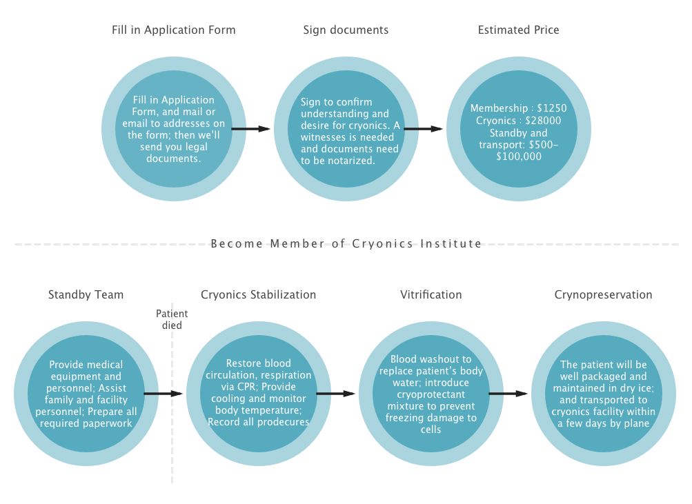Our goal is to lower the patient´s body temperature while administering medications and providing cardiopulmonary support long enough to introduce a vitrification solution via extracorporeal bypass (all this is done after the pronouncement of legal death). Further cooling is then done to dry ice temperatures, for transport to the main cryonics storage providers (Cryonics Institute) for further cool down to liquid nitrogen temperatures.